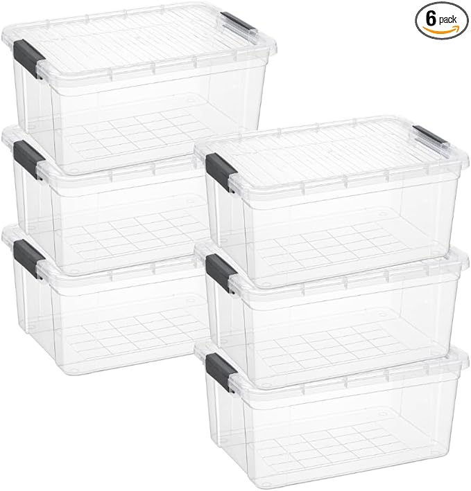 Superio Storage Bins with Lids, Clear Plastic Containers for Organizing, Stackable Totes, BPA Free, Odor Free, Organizer Boxes for Home, and Dorm (6 Pack, 36 Qt)