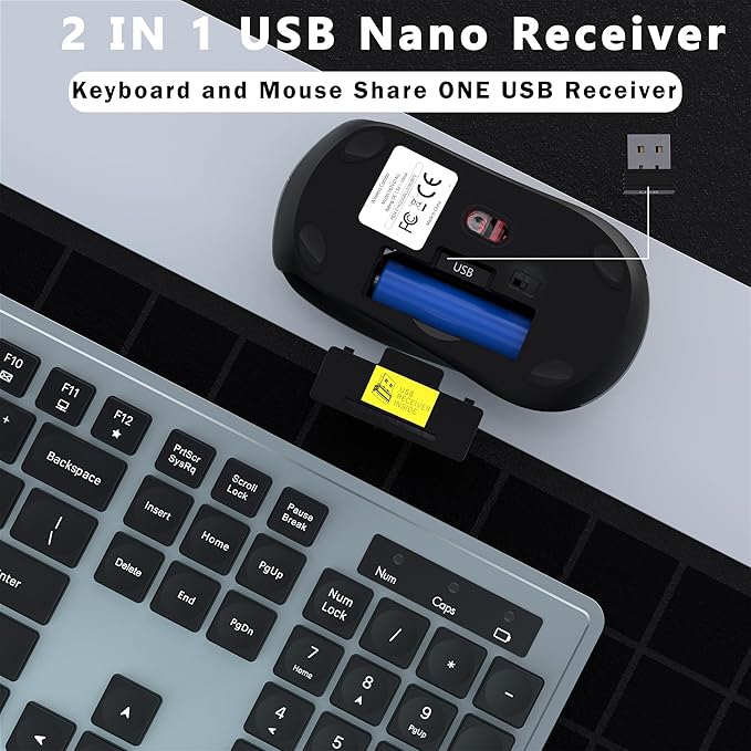 - Wide Compatibility: Compatible with Windows 11 10 8 7, and Mac OS. The keyboard requires 1 *AAA battery, the mouse requires 1* AA battery (Battery not included)