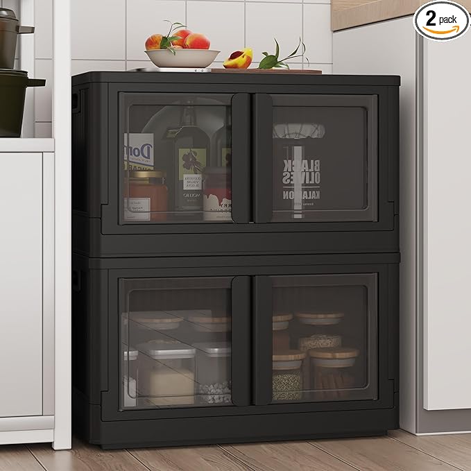 FLEXIMOUNTS 152 QT Stackable Storage Bins With Lids, Collapsible Plastic Storage Bins, Closet Organizers and Containers with Doors and Built-in Wheels For Home, 2 Pack Cubes, Milky White
