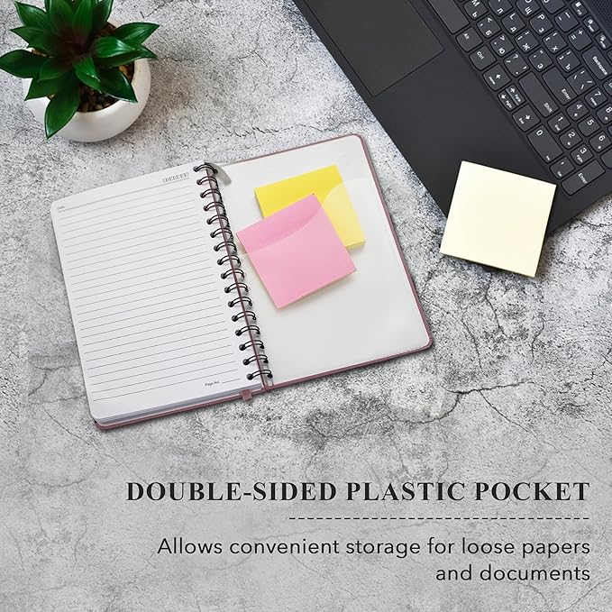 - POCKET FOR EASY STORAGE - Our thick paper spiral notebooks is equipped with a double-sided plastic pocket, and lets you securely store important documents, notes, or loose papers excellent for both personal and professional use.