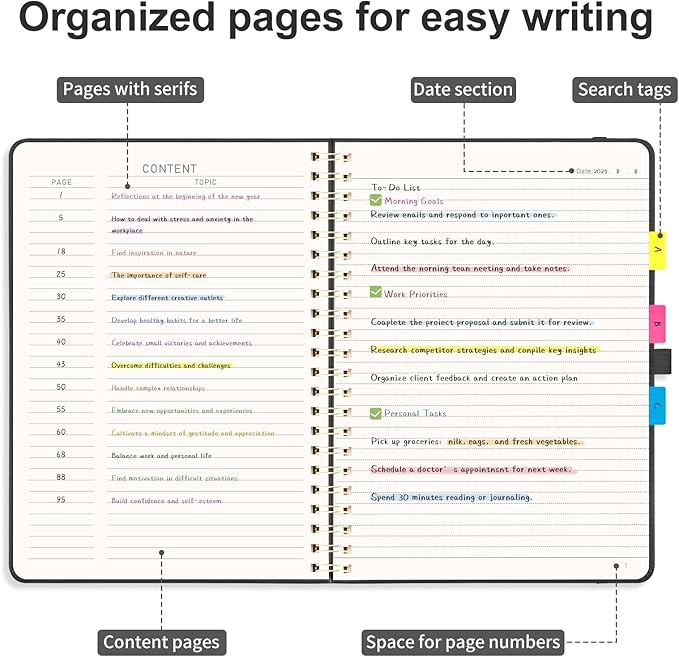 - MULTIPURPOSE NOTEBOOK: Ideal for travel, school, home, and office use. Our lined notebook is perfect for journaling, note-taking, personal daily journals, travel journals, work notebook, Bible study, and planning or for taking notes in college classes or meetings. It makes a thoughtful gift for friends, family, classmates, and colleagues