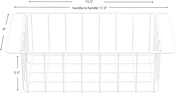 - Size of Freezer Baskets - Basket organizer bins dimensions 17.5"(L) x 8"(W) x 5.5"(H), excluding handles length 15.5". It's suggested to measure the size of your original refrigerator basket for refer.
