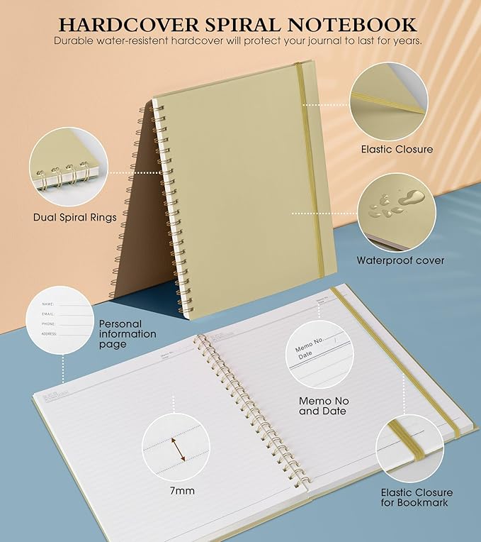 - 【A4 Hardcover Spiral Journal Notebook】 Large a4 size 8.5"x11" notebook, standard 7mm space classic college ruled journals. The professional sturdy water-resistant plastic hard cover will protect your notebooks to last for years, which has oil-resistant and anti-bending properties, effectively protecting the internal paper of the journal and provides a comfortable writing surface.