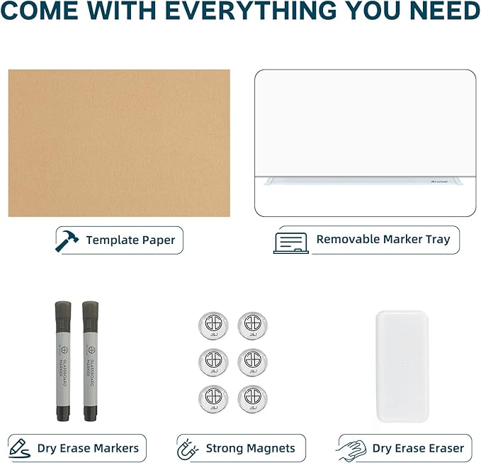 - 【ENVIRONMENTAL & LONG-LASTING】: The strong durable tempered glass surface resists stain and ghosting. Designed with 5mm thickness, rounded corner, and smooth edges. Cleaner, safer, and longer-lasting than traditional whiteboards.