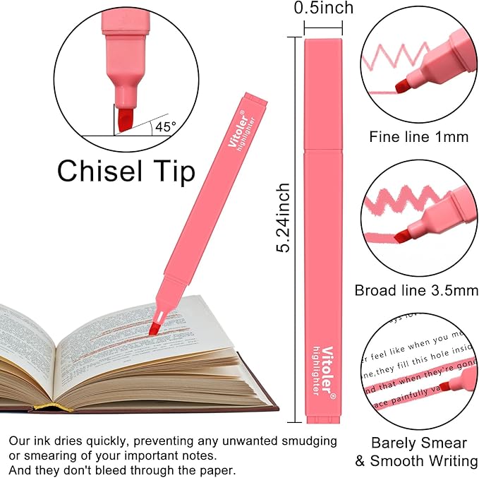 - 【Smooth Writing】The Vitoler highlighters are perfect for highlighting your scriptures, notes, journals, or any books you want to read. Free-flowing ink with a soft chisel tip lets you write everything smoothly.