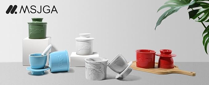 - PREMIUM CERAMIC - Crafted from premium ceramic, this butter crock is safe for daily use. The marble-patterned glaze provides a smooth, stripe-free surface that’s easy to clean and maintain. Enjoy the durability and elegance of this ceramic butter dish without worry.