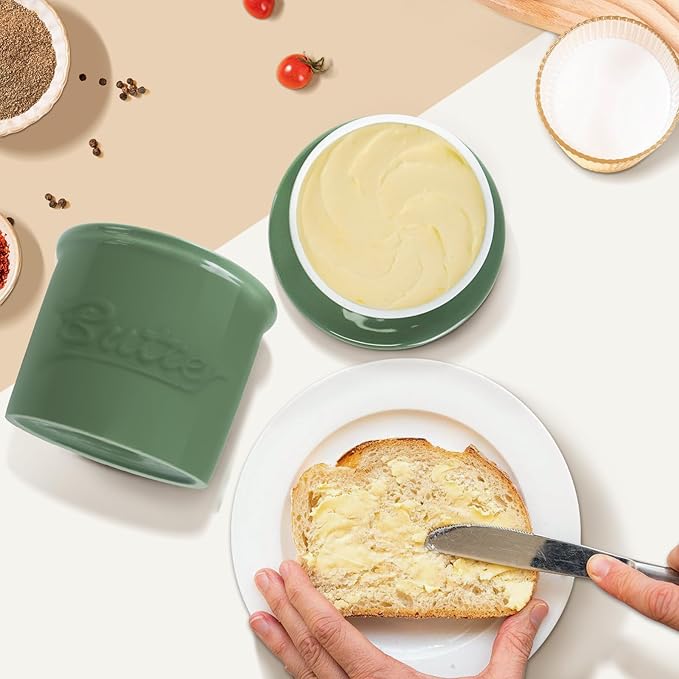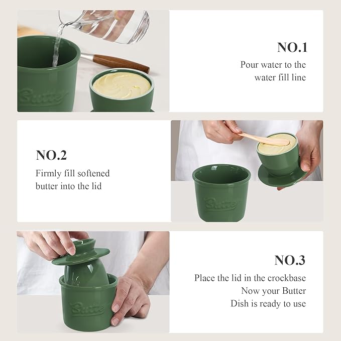 - GETTING RID OF EATING COLD BUTTER: If you love the soft taste of butter, hate hard and cold butter, and hate butter with a refrigerator smell. Don't miss this butter crock. This butter crock creates a sealed environment using water, keeping your butter fresh and flavorful at room temperature (up to 24°C, 75°F) for up to 10 days, without the need for refrigeration.