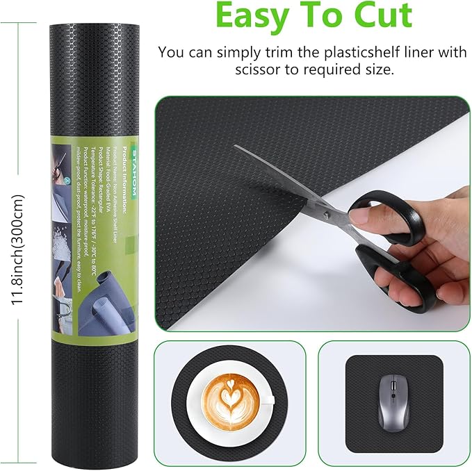 - 🎄【SAFE MATERIAL BPA FREE】🎄 The shelf liner is made of BPA free and odor free EVA material, durable and reusable. The shelf liners can directly contact fruits and vegetables, as well as protect shelves, drawers, cabinets and refrigerators from abrasion, tearing.