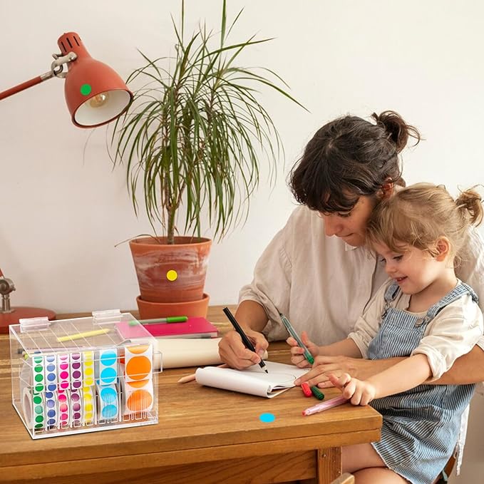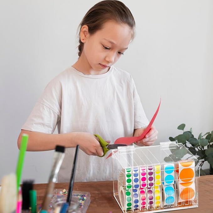 10 Disks Adjustable Label Dispenser with Lid 7.7 * 5.5 * 5.2 Inches Acrylic Sticker Dispenser Sticker Roll Holder for Holding Multi-Label Sticker Tape Date Markers Label Office (Not Include Sticker)