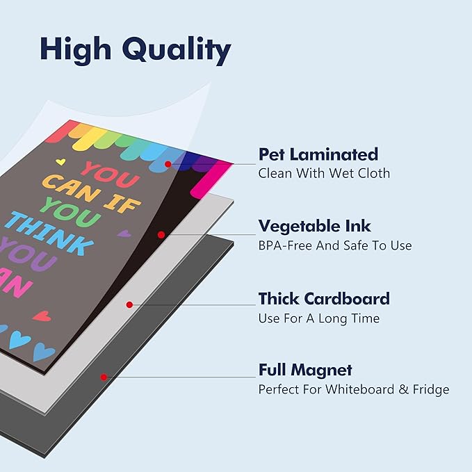 - Value Pack: It comes with 50pcs colorful inspirational magnets in 25 unique designs, designed to deliver a powerful message that will uplift your spirits and ignite your passion. Start your day with a powerful affirmation clinging to your refrigerator, a gentle reminder of your goals and aspirations.