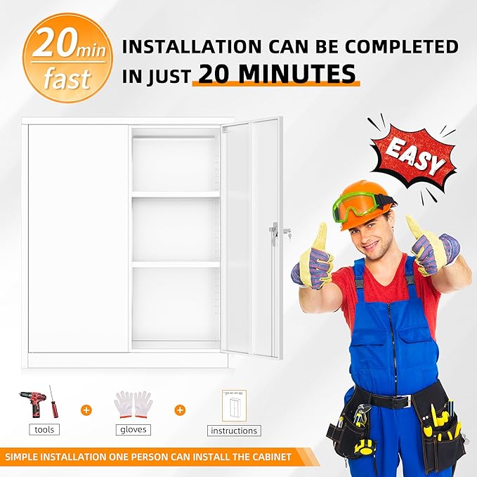 - 『PRACTICAL DESIGN』INTERGREAT metal cabinets equipped with lock and 2 adjustable shelves to provide adaptability and convenience. High-grade lock picking to secure valuables, two keys are included. Regardless of what your storage needs are, you have the ability to create a unique storage space to suit them.