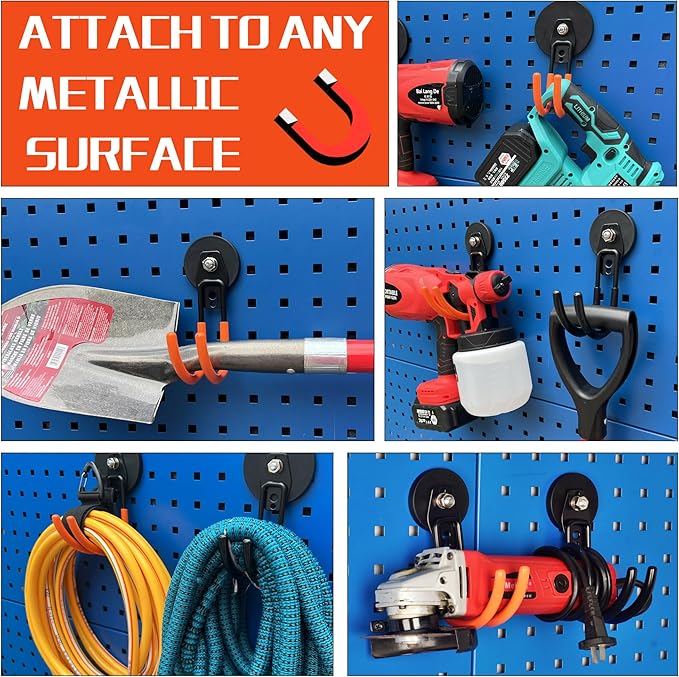 - [Heavy Duty Magnetic Hook]: garage storage hook can easily support the weight and can hang most items. Applicable to scenes such as kitchens, garages, warehouses, offices, etc