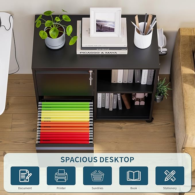 - 【Mobile Lateral Filing Cabinets】This file organizer cart features four swivel casters (2 locking) , so you can easily slide the lateral cabinet beside your desk or under a work surface. So flexible and practical file cabinet is easily to make your filing organized or simply keep your workspace tidy!