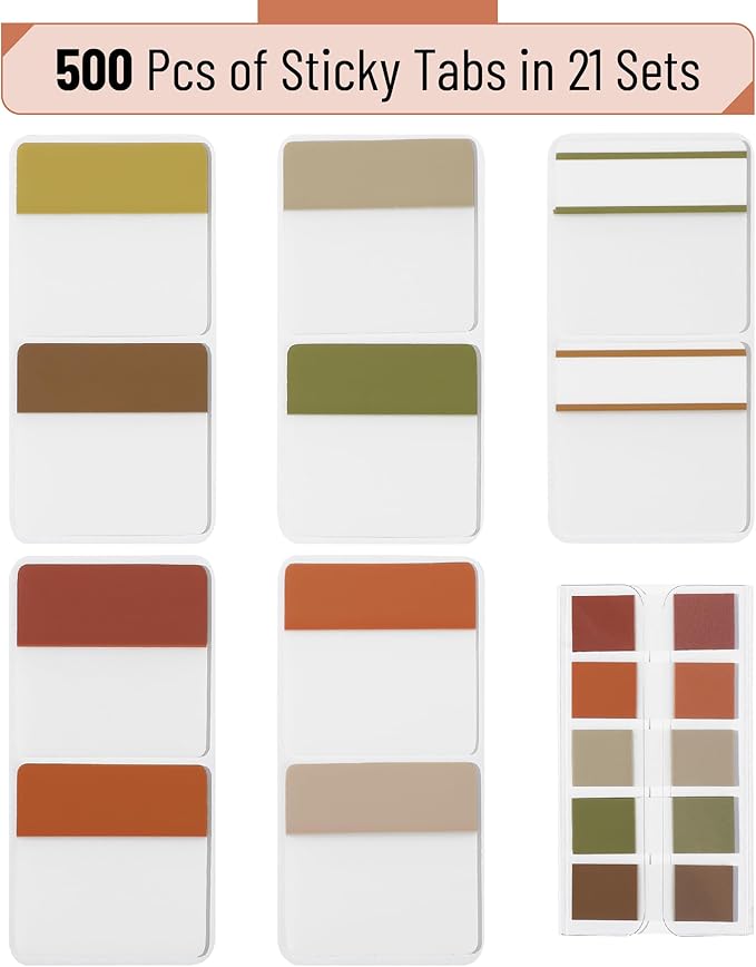 Mr. Pen- Sticky Index Tabs, 500 Pcs, 21 Sets, Colorful Sticky Tabs for Notebooks, Page Markers, Page Tabs for Binders, Page Tabs Sticky Tabs for Books, Notebook Tabs, Book Sticky Tabs for Notebooks