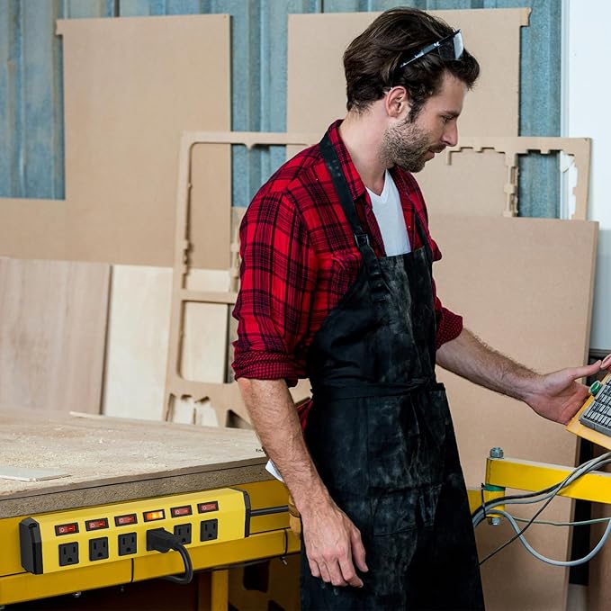 - Crafted from extra thick aluminum alloy housing, this heavy duty power strip offers extremely strong wear resistance, fire protection and impact prevention, ensures long-term reliable performance. Perfect for garage, workshop, office, home, school, etc.