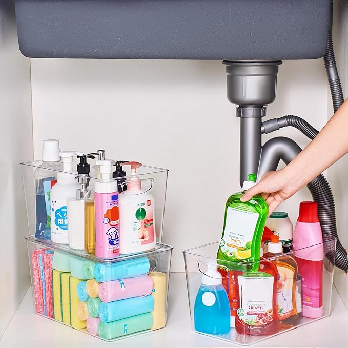 - Easy to grip built-in handle: Portable organizers, built-in, easy-grip side handles make it easy to put in and take out, transport from place to place. Premium material with a clear view to accomplish high visibility, convenient to check what you have and what you need in daily life. Lots of bins, enough to put every corner over the house to keep organized. A better life experience with the small details.