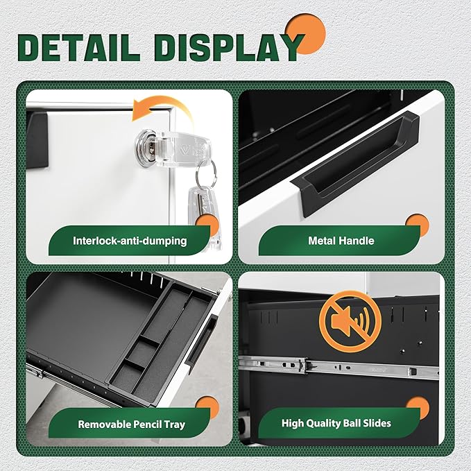 - Privacy Security:1 lock secures all three drawers, comes with 2 keys for your locking ,Anti-tilt mechanism allows only one drawer to open at the same time to prevent the cabinet from tipping forward