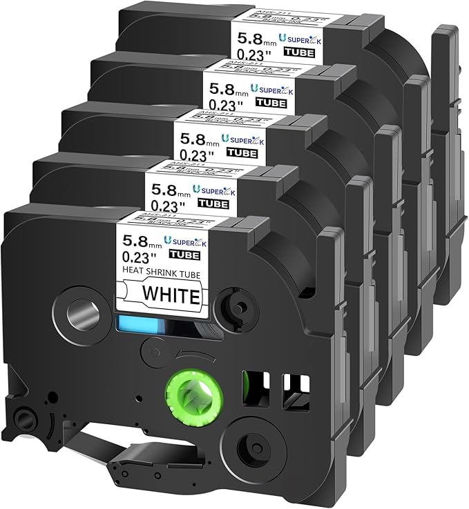 - USUPERINK Alternative Replacement Compatible for Ptouch HSe-211 HS-211 HSe211 HS211 AHS-211 Preminum Heat-shrink Tube Label Maker Tape