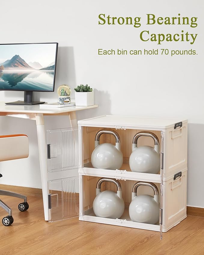 - Large Capacity: With dimensions of 23.8 inches (L) x 15.4 inches (W) x 13.3 inches (H) (2.17 inches when folded), these storage bins offer a spacious capacity of up to 76 quarts (19 gallons). They comfortably hold everyday items like cleaning supplies, snacks, office materials, and seasonal decorations. Their robust construction can support weights of up to 210 pounds (95KG) of weight, making them suitable for heavier items like books and tools