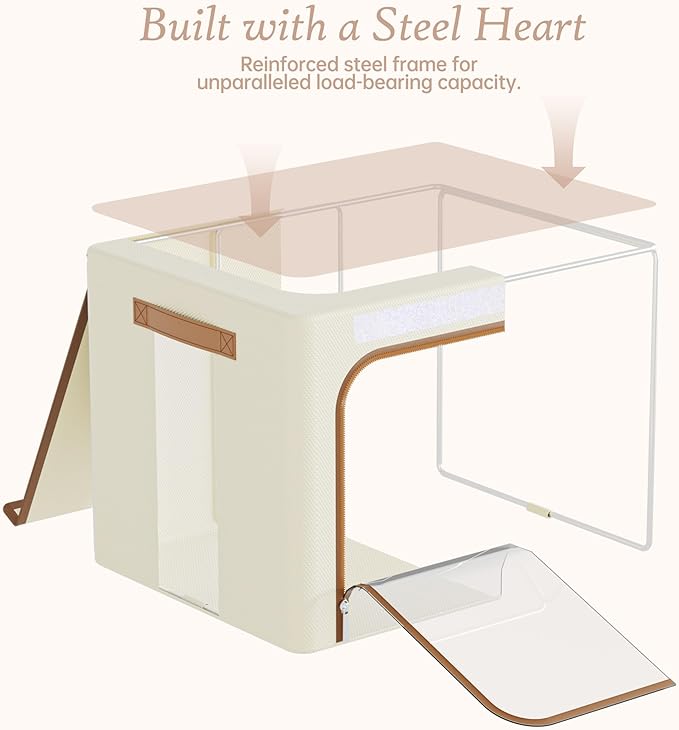 - Built to Last: Say goodbye to flimsy storage options. Yecaye clothes storage bins is crafted from high-quality Oxford fabric, which is more durable than non-woven materials. Reinforced with a sturdy steel frame, and easy-to-carry PU leather handles, it’s a tough yet stylish solution for all your storage needs