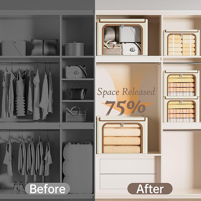 - Fold and Stack Freedom: Maximize your space effortlessly! This storage bins with lids features a foldable and stackable design adapts to tight spaces—under the bed, in closets, and more. When not in use, it collapses neatly, saving you even more space and making tidying up almost magical