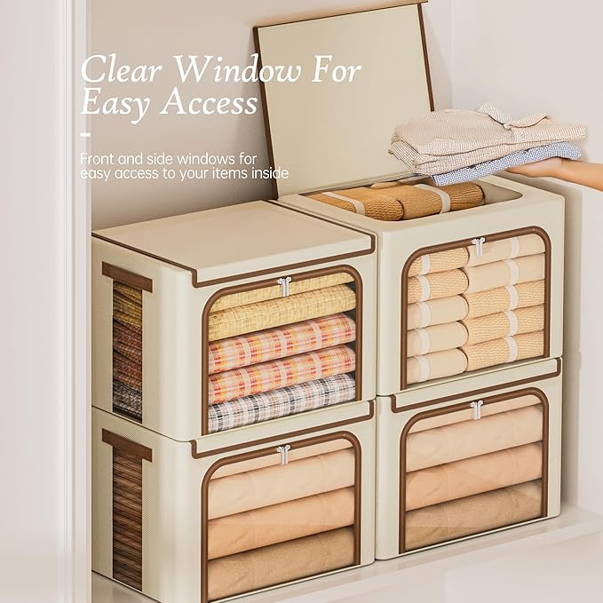 - Transparent Insights: No more guesswork! Our clothing storage bins has transparent windows on both the side and front, it’s easy to identify contents at a glance. Whether you’re organizing seasonal clothing or storing holiday decor, the clear panels help you find your essentials quickly, adding convenience to your home organization