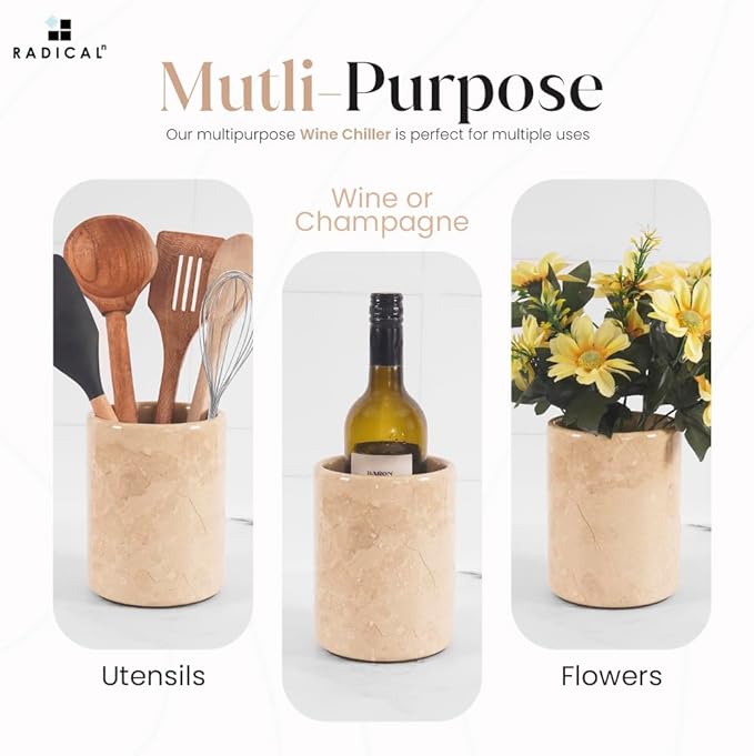 Radicaln Marble Wine Chiller Verona 6.5" Inches Handmade Insulated Cooler For Champagne - Wine Bottle Holder & Beverage Cooler For Bar Accessories