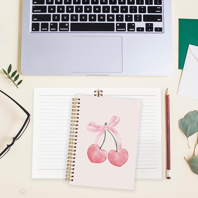 BearCake Preppy Pink Aesthetic Notebook,Cute notebooks for Women,Pink Cherry Dog Notebook gift,Pink Desk Accessories for Women, Hardcover Spiral Notebook 5.5x8.3