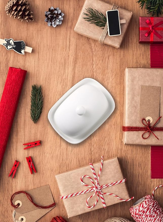 - [Ideal Gift]This butter container with lid is artistic and practical,convenient for you to use fresh butter anytime, anywhere. At the same time, Sweejar ceramic butter dish is an ideal gift for yourself, family, and friends.Great gift for every festival, such as Christmas Thanksgiving Day, housewarming gift