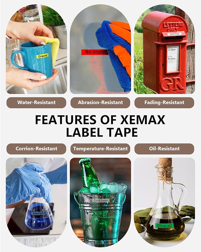 - Wide Applications: These 6mm 0.23" laminated white label tapes are suitable for indoor and outdoor use. The ptouch tape 6mm 0.23" white label is widely used in home, offices, schools, businesses, gardens, industrial, and more