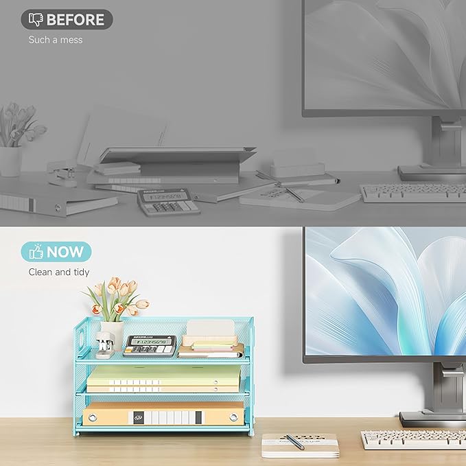 - Aesthetic Decor Design: The 3 tier paper tray organizer has a contemporary and minimalist design. The different color choices enhance the overall appearance, making it suitable for various decor settings, whether in a home office, business office, or school