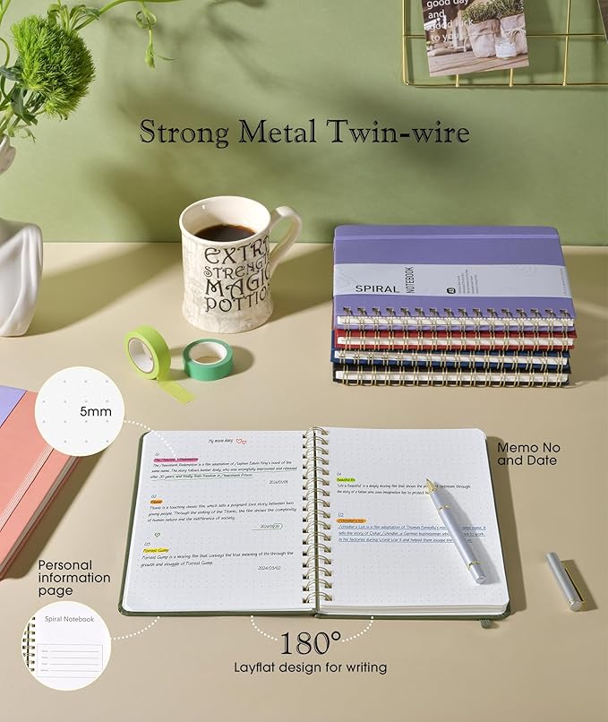 - 【Metal Twin-wire Construction】Our wire-bound spiral journal notebook has a sturdy gold-color double wire spiral with easy-to-turn pages and keeps pages attached reliably. Metal wire ring makes it easy to tear out pages without disturbing the rest of the pretty notebook. The 180°flat binding makes it easy to take notes with either hand, making it easier to read and more efficient to keep track of things.