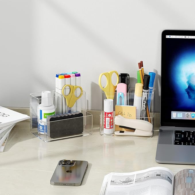 - 【PREMIUM QUALITY】:This simple marker holder is made of durable acrylic with magnetic back,won't easily darken or yellow.Perfect for any office décor while elegantly eliminating the hassle of lost pens.
