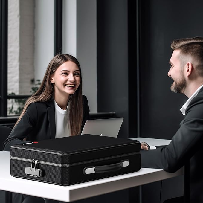Fireproof Document Box with Fireproof Zipper, Hard Inner Shell Fireproof Document Bag with Lock, Fireproof Water Resistant Important Document Organizer 16 inch Laptop File Briefcase (Black)