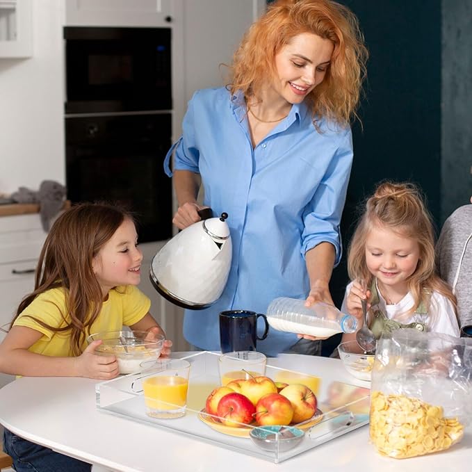 - Multiple Environmental Uses: The acrylic trays for serving is perfect for breakfast in bed, appetizers, drinks and desserts. Stylish design makes it a centerpiece for your living room, a stylish choice for outdoor parties and picnics, and an organizer for women's cosmetic storage management.
