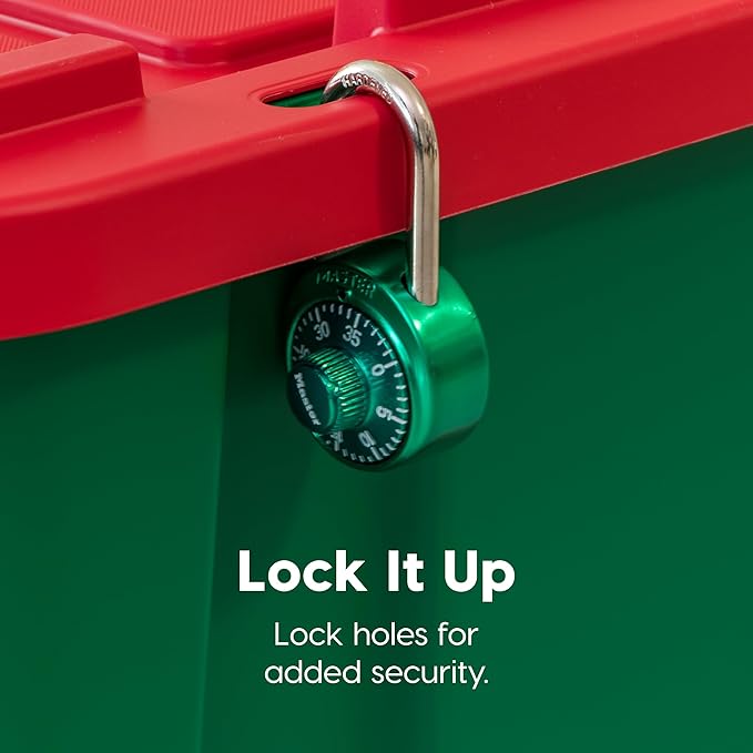 IRIS USA 12 Gallon Heavy Duty Holiday Storage Bins with Lids, 4 Pack - Made in USA, Tough Snap On Lockable Lid Stackable Industrial Rugged Tubs, Garage Organization, Reusable Box - Green/Red
