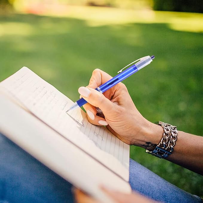 - 【Smooth writing experience】: The Retractable design ensures that these ballpoint pens have blue ink ready to use at any time. The blue ink color produces clear text, making it easy to read. The pen tip slides effortlessly on paper, providing a smooth and enjoyable writing experience that will make any task more comfortable.