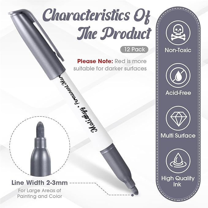 - Product Includes: The package contains 12 pieces of metallic permanent markers, gold, silver, copper, 4 of each color, which are perfect for adding brilliance and decoration to various crafts; Please note: the caps need to be covered when not in use to prevent the ink from drying