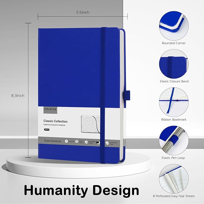 - 【Humanity Detail Design】ONAVIA A5 journal notebooks for work includes 1 Ribbon Bookmark that can help you mark the exact spot you left off. 1 Elastic Pen Loop ensures that you always have a pen or pencil readily available when you need to jot down a note. 1 Expandable inner pocket for storing loose items like notes, bills, receipts, appointment cards, and more