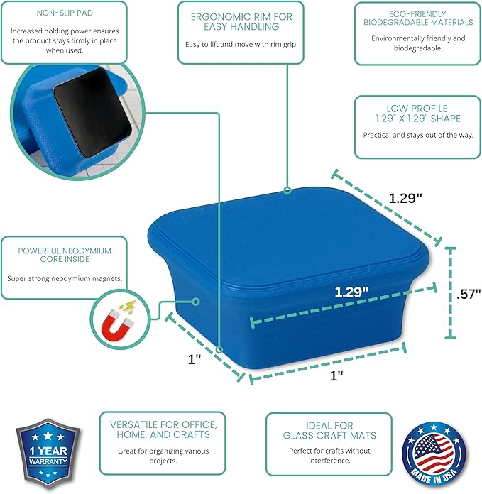 Glassboard Studio MiniBar Magnet - Strong Neodymium Rare Earth Magnets for Fridge, Whiteboard, Locker & Magnetic Glassboards - Ideal for Crafting & Office Use - Strong Fridge Magnets (Cobalt Blue, 12)