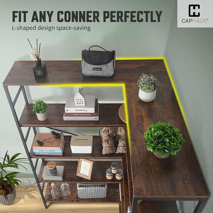 - Elegant Structure: Industrial-style 5-tier L-shaped design; efficiently uses corner space for organized storage and display; each tier provides ample room for items; combines a modern, sleek look with enhanced accessibility and visibility in any room