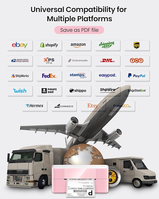 - Wide Application: This label printer for small business works with virtually all platforms like Amazon, Ebay, Shopify, USPS, UPS, Esty, PayPal, DHL, FedEx, etc. Besides, our desktop usps label printers prints labels from 1 to 4.6 inches wide for text, images, barcodes, QR codes, forms, holiday cards, and thank you cards. It has lots of icons and templates for both commercial and home use, boosting your efficiency