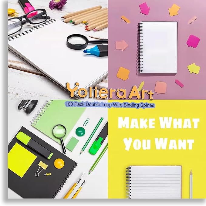 - YolieraArt 100 Pack Double Loop Wire Binding Spines, These double loop wire binding spine can accommodate up to 100 sheets of A4 paper, You will receive a paper box with a length of 12 inches,These wire binding spines are neatly and orderly stored in this cardboard box