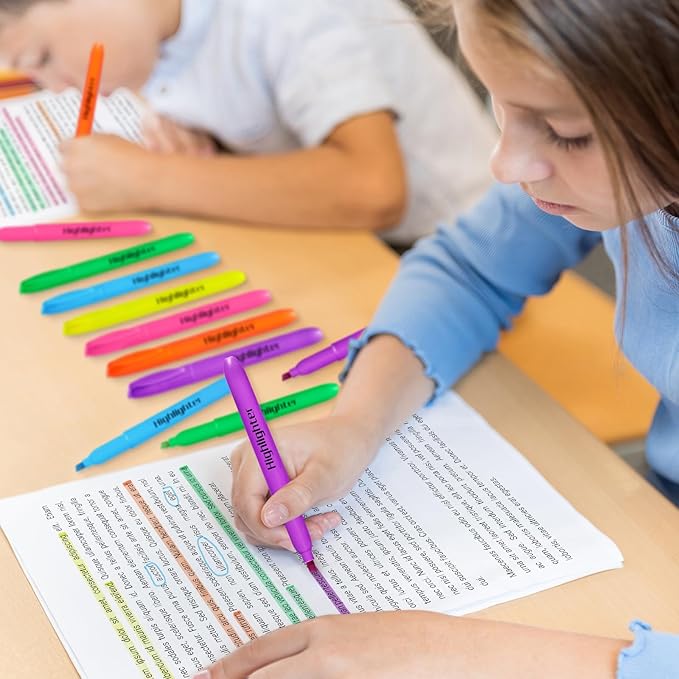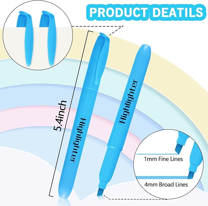- Fast Drying & Durable: The highlighters pens use durable, quick-drying ink, allowing highlighted marks to be clearly visible without worrying about the ink staining your hands and books. Each highlighter is equipped with a pen cap to avoid ink from drying out for long-lasting use. Special Reminder; Remember to be sure after use keep the pen cap closed to prevent the ink from drying out.