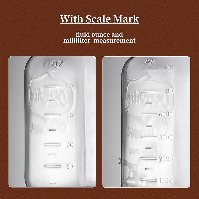 - With Measurement Marks:The glass drink dispenser with fluid ounce (American unit of capacity) and millimeter(international volume unit).You don't need to use a measuring cup which makes more convenient.it is very suitable for homemade juice, lemonade, sangria, milk, sun tea, kombucha, punch, chilled tea