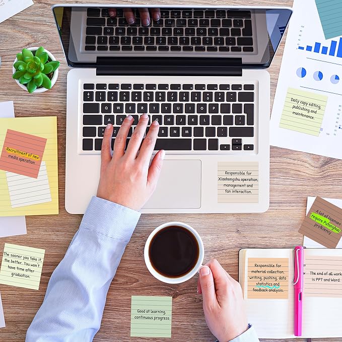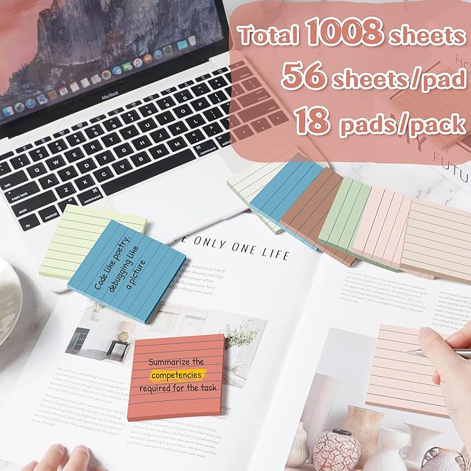 (18 Pack) Lined Sticky Notes 3x3 in Post, Vintage Colors, Sticky Pads, Strong Adhesive, Recyclable, Self-Stick Pads, Easy to Post for Home, Office, Notebook