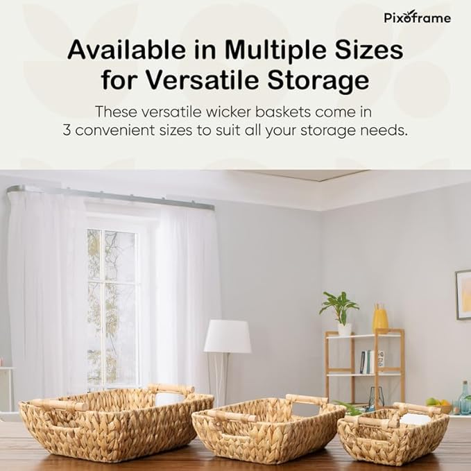 - Available in Multiple Sizes for Versatile Storage: These versatile wicker baskets come in 3 convenient sizes (Large, Medium and Small) to suit all your storage needs. These sizes are perfect for storing hand towels, toilet paper, fruits, veggies, and snacks.