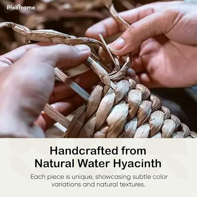 - Handcrafted from Natural Water Hyacinth: Made from 100% natural water hyacinth, this basket brings a rustic touch to your decor. Each piece has unique and natural textures, making it a beautiful addition to any setting.