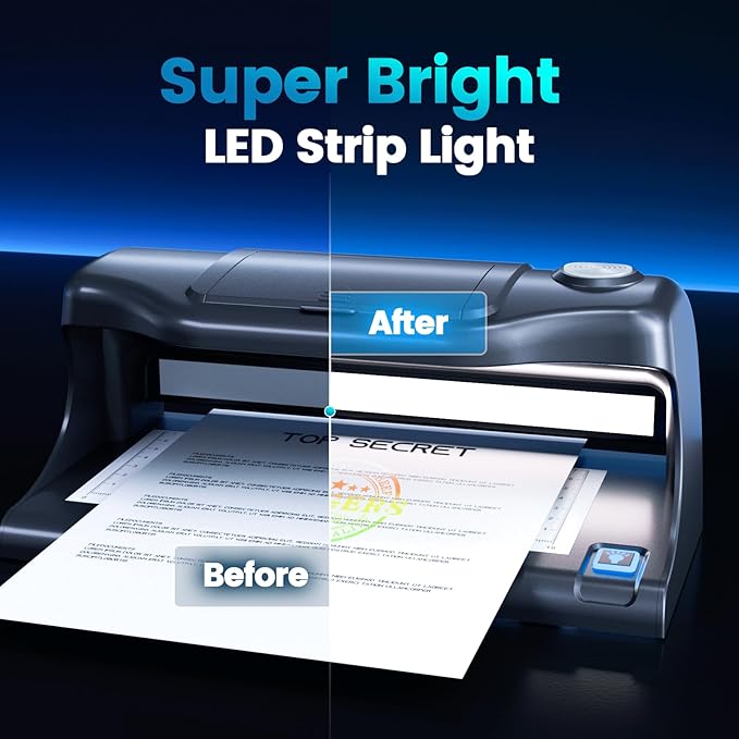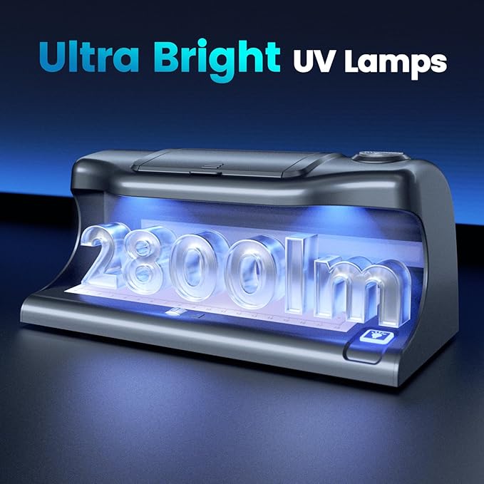 - 【LED Strip with Magnification Tools】:The money checker machine paired with 5x and 10x magnifying lenses, the 2800LM LED strip illuminates even the smallest details on bills, this money scanner ensuring that no counterfeit features go unnoticed.