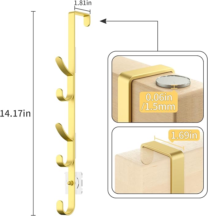 - 【Range of Application】The coat hook is 14.17 inches long, and the door hanger is 0.06 inches thick, fitting doors up to 1.81 inches thick. The bag hanger is great for entrances, living roomsbedrooms, bathrooms, closet and kitchens, holdingbags, clothes, towels, gloves, scarves, etc.
